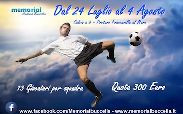 FRANCAVILLA AL MARE (CH) – Si svolgerà a Francavilla al Mare, in contrada Pretaro, dal 24 luglio al 4 agosto prossimi il Memorial Andrea Buccella. Si tratta di un torneo di calcio a 8 che ha il fine di ricordare un giovane prematuramente scomparso.