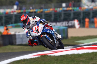 MAGNY-COURS (FRA) – Ancora una volta il pilota abruzzese Federico D’Annunzio regala emozioni in una gara avvincente disputata oggi in Francia. In gara nel Mondiale Superbike categoria Superstock 1000 in sella alla sua moto BMW S 1000 RR HP4, nel circuito di Magny-Cours D’Annunzio ha chiuso decimo dopo una gara al cardiopalma e combattuta fino alla fine. Partito tredicesimo e ritrovatosi quasi subito in sedicesima posizione, ha iniziato immediatamente una rimonta che lo ha portato gradualmente a raggiungere la decima posizione,che poi ha nuovamente perso scivolando alla dodicesima ma riconquistandola sul filo di lana e chiudendo la gara al decimo posto nonostante un problema in gara con la fuoriuscita di una marcia in staccata che ha fatto perdere il contatto con i primi. Anche questa volta però, come ormai siamo abituati, D’Annunzio ha suscitato l’attenzione dei cronisti che si sono complimentati per la top ten agguantata dal pilota abruzzese.