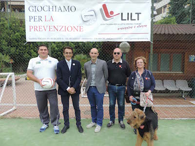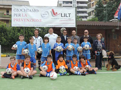PESCARA – ‘Facciamo squadra – Giochiamo per la prevenzione’ è lo slogan che, a partire da oggi, accompagnerà i tornei dell’Accademia Calcio Naiadi a suggellare il gemellaggio siglato con la Lilt-Lega Italiana di lotta contro i tumori, sezione di Pescara, presieduta dal professor Marco Lombardo. In ogni partita del torneo, i ragazzi di Mister Federico Torrieri, sei squadre composte dalle giovanili ed esordienti, indosseranno magliette e porteranno il pallone della Lilt per ricordare quanto sia importante prendersi cura della propria salute in ogni fascia d’età e divulgare lo stesso messaggio tra i giovanissimi. La nuova partnership è stata sacramentata sul campo di calcio de Le Naiadi, alla presenza del Presidente Lombardo, di mister Torrieri, del vicepresidente Lilt Milena Grosoli, della responsabile del progetto per la Lilt, la dottoressa Maria Di Domenico, e del componente del Direttivo Paolo Lucente. Presente anche l’assessore allo sport del Comune di Montesilvano Paolo Cilli.