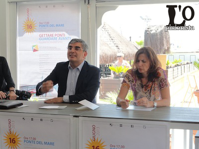 Nella conferenza stampa di ieri mattina tenutasi presso lo Stabilimento “Apollo”, D’Alfonso ha presentato l’evento che si terrà Domenica 16 giugno al Ponte del Mare, lato Madonnina alle ore 17,00 dal titolo : “ Gettare ponti – guardare avanti” , Confronto pubblico di idee per le nostre città e per la regione con musiche e danze dalle vicinanze del mondo.