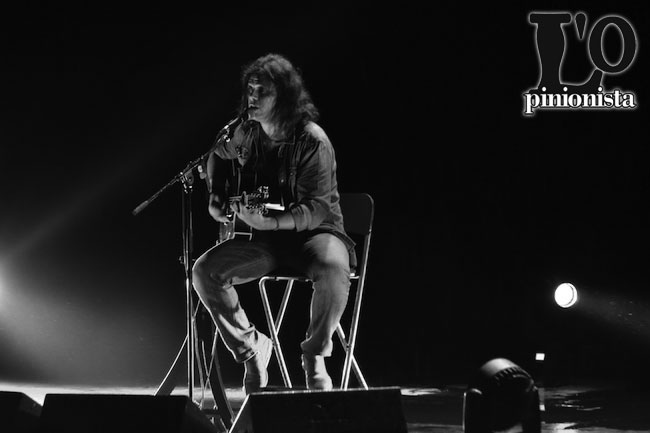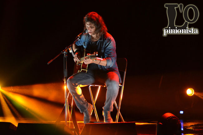 Quando attacca “Il re del niente”, si interrompe dopo pochi secondi perchè nota un bambino che conosce la canzone a memoria, e così decide di invitarlo sul palco per farlo cantare assieme a lui. Un gesto semplice ma che denota una volta di più il carattere fortemente confidenziale della serata, dove il pubblico viene di fatto portato “a casa” dell’artista e, come quando ci si trova attorno a un falò, vengono sciorinate note ed emozioni che fanno pendant con i ricordi.