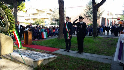 hanno intonato i canti dell’Inno di Mameli e del Piave. «Dobbiamo rendere onore alle donne e agli uomini delle Forze Armate che si sono adoperati e continuano ad impegnarsi per garantire ai nostri figli un’Italia e un’Europa più sicura ma anche più accogliente – ha dichiarato il sindaco nel suo saluto -. Celebriamo in questo giorno di Memoria lo straordinario valore civile delle nostre Forze Armate che consente di rafforzare e tenere saldi, anche in tempi di pace, quegli stessi ideali che hanno consentito il raggiungimento dell’Unità Nazionale. Ricordiamo il 4 novembre per riflettere sull’inutilità e l’ingiustizia della guerra come mezzo di risoluzione delle controversie internazionali ed allo stesso tempo onoriamo le Forz