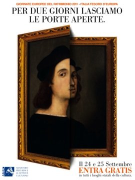 Si svolgeranno il 24 e 25 settembre prossimi , in Italia e in altri 49 Stati Europei, le Giornate Europee del Patrimonio 2011 con l’emblematico slogan: “L’Italia tesoro d’Europa”.
