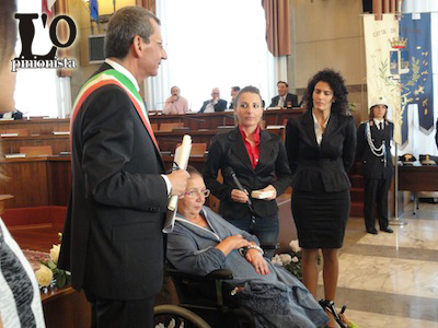 PESCARA – Cerimonia di premiazione questa mattina al Comune di Pescara, dove sono stati conferiti come ogni anno i Ciattè ed i Delfini d’Oro; alla premiazione erano presenti le autorità civili e militari nonché gli stessi premiati. Il Comitato dei Saggi, composto da Gabriella Albertini, Claudio Palma, Suor Olga Pignatelli, Ugo Crescenzi, Lucio D’Arcangelo, Michela De Amicis, Piergiorgio Landini e Luciana Vecchi quest’anno hanno deciso di assegnare i premi alle seguenti personalità. I Ciattè d’Oro, sono destinati a quei cittadini che sono nati a Pescara e si sono distinti per il proprio operato sul territorio, sono stati assegnati a Gianna Camplone, Presidente dell’Associazione DiversUguali, promotrice della nascita di laboratori di formazione e d’impresa per i circa 300 ragazzi che oggi gravitano attorno all’Associazione; il professor Massimo Sargiacomo, Professore dell’Università d’Annunzio; e alla memoria il terzo Ciattè d’Oro è stato assegnato a Nando Filograsso.