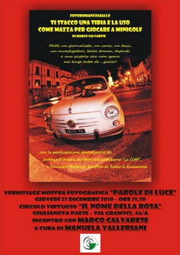 GIULIANOVA (TE) – Si terrà giovedì 23 dicembre 2010 , alle ore 21,30, presso il Circolo Virtuoso Il Nome della Rosa in via Gramsci, 46/A,Giulianova Paese,il vernissage della mostra fotografica dal titolo “Parole di luce” di Marco Calvarese.L’esposizione è a cura di: Manuela Valleriani.