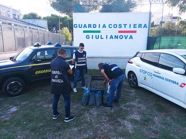 GIULIANOVA – Nei giorni scorsi, personale del Corpo delle Capitanerie di porto – Guardia Costiera appartenente all’Ufficio Circondariale marittimo di Giulianova e del Corpo della Guardia di Finanza appartenente alla Compagnia Guardia di Finanza Giulianova, intercettava su strada una autovettura all’interno della quale venivano rinvenuti 155 kg di Vongole (Chamelea gallina) contenute in involucri di plastica e borsoni, adagiate su superfici non idonee ad assicurare la salubrità dei prodotti della pesca e trasportate utilizzando un mezzo non refrigerato.