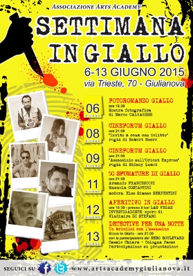 GIULIANOVA (TE) – Sempre più caldo il mese di giugno per l’Associazione Culturale non-profit “ARTS ACADEMY” di Giulianova che, mentre inizia a contare i primi interessi di diverse band, cantanti e musicisti che hanno voglia di esibire il loro talento e comporre il calendario di una Stagione di Concerti 2015/2016, si concentra ora sulla “Settimana in giallo”.