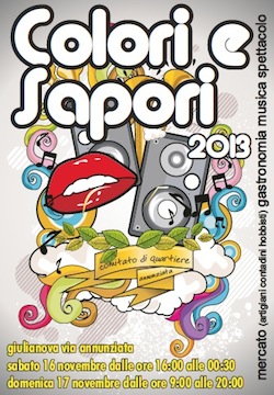 GIULIANOVA (TE) – Il Presidente del Quartiere dell’Annunziata di Giulanova,Patrizia Casaccia rende noto che dalle 16.00 alle 00,30 di sabato 16 novembre e dalle 9.00 alle 20.00 di domenica 17 novembre si svolgerà la manifestazione “COLORI E SAPORI” – Via Annunziata ,che rientra fra le più recenti iniziative del Comitato di Quartiere dell’Annunziata.Infatti tenendo conto delle richieste dei commercianti, si è formato un tavolo di lavoro per organizzare delle manifestazioni che possano rivitalizzare una parte di Giulianova (quella dell’Annunziata) dove solitamente non vengono previste iniziative né nel periodo estivo né in quello invernale.