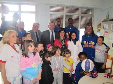 re il titolo di Pescara Città Europea dello Sport. Parliamo di un evento che si colloca a metà tra lo sport e lo spettacolo di una squadra costituita nel 1926 negli Stati Uniti nel pieno delle problematiche razziali, ossia per riunire tutti quei giocatori eccezionali che, nonostante le proprie doti sportive, erano rifiutati dal campionato dei professionisti perché di pelle scura. Oggi gli Harlem Globetrotters sono una leggenda, campioni che una volta sul campo sanno regalare momenti di spettacolo eccezionale giocando con la palla piena d’acqua che non rimbalza o facendo giochi di prestigio. Su 25mila partite giocate, sino a oggi gli Harlem Globetrotters ne hanno perse appena 300 e negli anni hanno visto la presenza di campioni come Chamberlain e Joseph Blair. Il primo a chiamarli in Italia fu Adolfo Bogoncelli che nel 1952 affittò il Vigorelli di Milano per tre serate. Oggi quello che conta è lo spettacolo e il messaggio di solidarietà che lanciamo a ogni evento, come quando tre anni fa, appena un mese dopo il terremoto, gli Harlem Globetrotters sbarcarono a L’Aquila donando un giorno di spensieratezza a bambini colpiti nell’animo da un evento drammatico come il terremoto.