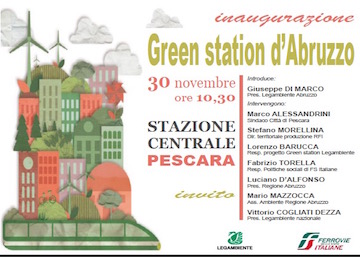 PESCARA – Sarà inaugurata oggi, domenica 30 novembre alle 10.30, nel Binario 1 della Stazione Centrale di Pescara, la nuova sede dell’associazione ambientalista Legambiente Abruzzo.