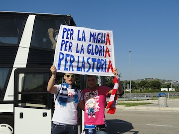 Il ritrovo per l’appuntamento della partenza era fissato alle 7.30 da Pzza Duca degli Abruzzi, tutti rigorosamente con sciarpe e bandiere.