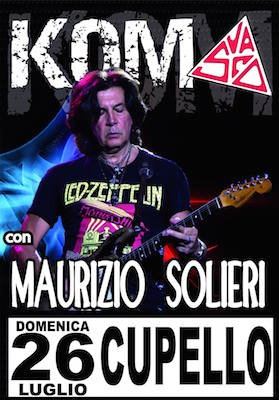 CUPELLO (CH) – Domenica 26 luglio a Cupello (Ch) appuntamento con il rock, quello autentico. I Kom, band tributo a Vasco Rossi, saranno accompagnati per l’occasione dallo storico chitarrista del Blasco nazionale Maurizio Solieri. Autore delle musiche di Canzone, Ridere di te, Dormi dormi e Lo show, i suoi riff e gli assoli fanno di lui uno dei chitarristi rock più apprezzati in Italia.