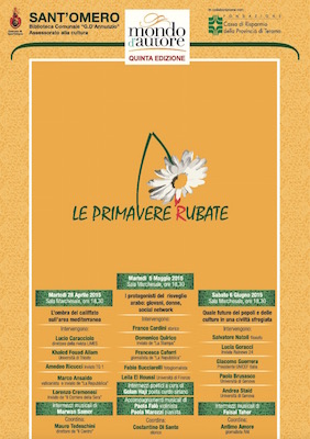SANT’OMERO (TE) – Martedì 5 maggio alle ore 18:30, nella Sala Marchesale di Sant’Omero, nuovo appuntamento con l’edizione 2015 di Mondo d’Autore, iniziativa culturale della Biblioteca Comunale G. D’Annunzio di Sant’Omero, ideata e organizzata dalla Direttrice Grazia Faillace e giunta alla quinta edizione con la partecipazione entusiasta di un pubblico sempre più numeroso. Dopo un primo incontro sulla presenza incombente del califfato nell’area mediterranea che ha inaugurato l’edizione con grande successo, Mondo d’Autore prosegue la sua iniziativa di approfondimento sulle Primavere arabe con un secondo appuntamento dal titolo: I protagonisti del risveglio arabo: giovani, donne, social network.