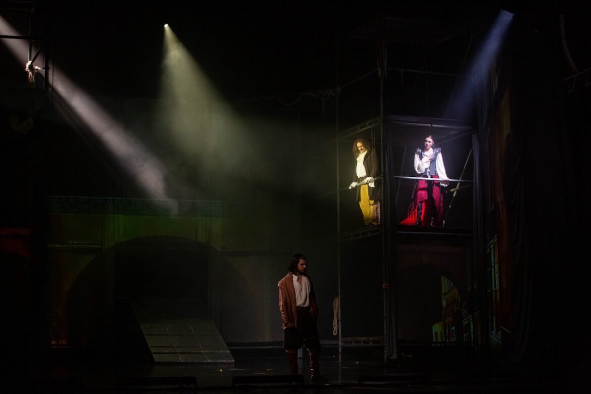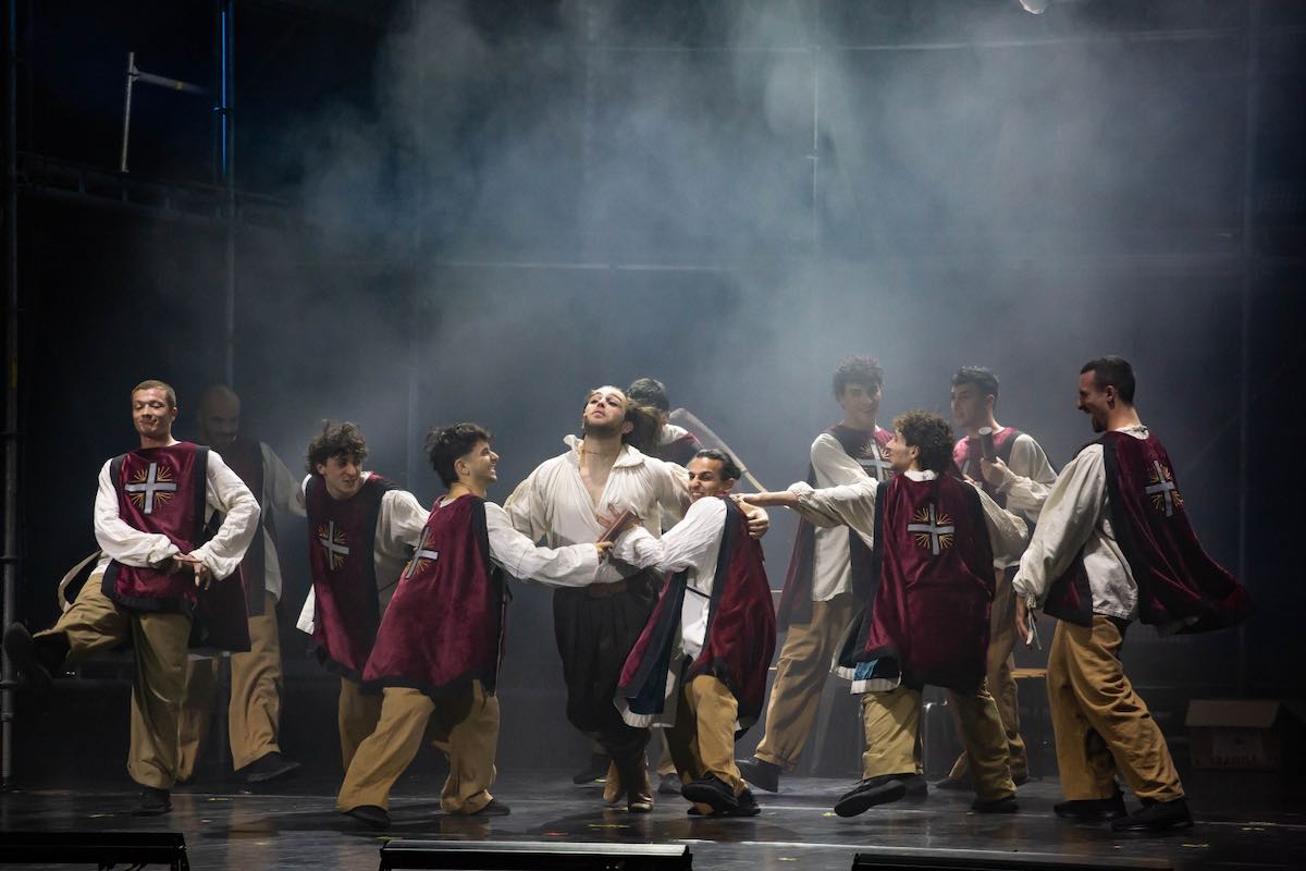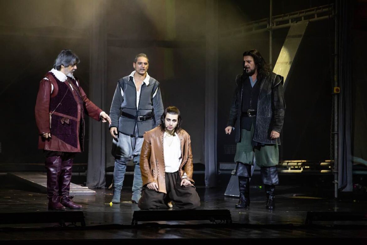 Tra i momenti più drammatici, la morte di Costanza (Beatrice Blaskovic) avvelenata da Milady (Camilla Rinaldi), con l’interpretazione di Sea John nei panni di D’Artagnan che ha commosso la platea. Sul palco anche Leonardo Di Minno (Rochefort), Cristian Mini (Richelieu), Roberto Rossetti (Dumas) e Gabriele Beddoni (Planchet).
