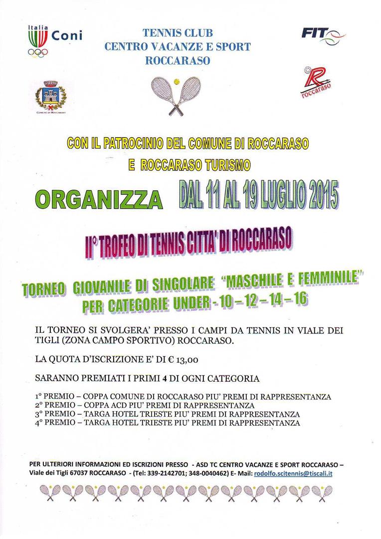 ROCCARASO (AQ) – Inizia sabato 11 luglio il II Trofeo di Tennis Città di Roccaraso, organizzato dal Tennis Club Centro Vacanze Sport Roccaraso.