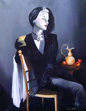 C’è qualcosa di misterioso negli sprazzi di luce che solcano in perfette verticali quasi tutti i suoi quadri. Sembrano voler mettere in discussione la profondità e la prospettiva dell’insieme. La figurazione dei primi piani appare come uno sprofondare nella drammaticità,misteriosa ma concreta,tipica della contemporaneità. Il linguaggio è di chiara matrice psicoanalitica. I suoi paesaggi invece,richiamano atmosfere fiabesche con figure che paiono emergere da sogni lontani,da mondi incantati,tra realtà e fantasia. In questa mostra espone opere realizzate negli ultimi tre anni in cui si evidenzia particolarmente uno studio approfondito sulla figura umana e sul ritratto inteso come “sguardo nell’anima” , con riferimento a soggetti classici rappresentati in chiave contemporanea.