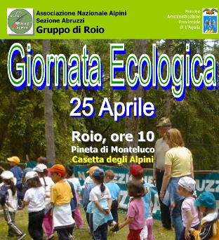 Per il 25 aprile gli Alpini di Roio organizzano alla Pineta di Monteluco di Roio (L’Aquila) la tradizionale Giornata Ecologica che quest’anno è dedicata alle vittime del terremoto aquilano.