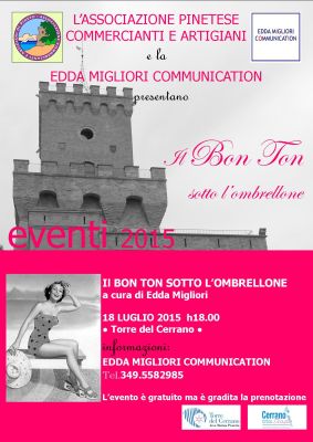 PINETO (TE) – Un evento originale ed inedito quello che proporrà la giornalista ed esperta di relazioni pubbliche Edda Migliori il prossimo 18 Luglio alle ore 18.00 a Torre Cerrano. Dopo il successo del Laboratorio di Narrazione e riciclo creativo che ha condotto qualche giorno fa, Edda Migliori tornerà questo sabato con un appuntamento che sta già incuriosendo molte persone ed è il secondo di tre appuntamenti del cartellone estivo “Immersione nei libri e nella creatività” organizzato dall’Associazione Pinetese Commercianti e Artigiani e dalla Edda Migliori Communication con AMP Torre del Cerrano e Cerrano Trade. “Vivere con grazia significa in primis rispettare se stessi e le persone che si hanno accanto. Bastano poche norme di vivere civile a rendere le relazioni interpersonali più fluide e cordiali. Anche in vacanza è opportuno mettere in valigia le buone maniere- ha spiegato la giornalista Edda Migliori continuando– ringrazio l’Associazione Pinetese Commercianti e Artigiani, l’AMP Torre del Cerrano e la Cerrano Trade per questa collaborazione”. L’ultimo appuntamento del cartellone “Immersione nei libri e nella creatività” si terrà Giovedì 23 luglio alle ore 18.00 a Torre del Cerrano con la presentazione del libro “Burundi” alla presenza dell’autore Filippo Lucci.