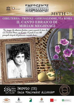 Miriam Meghnagi sarà sabato 28 novembre a Nereto per la rassegna Emergenze Mediterranee. In scena, alle ore 21 nella Sala Salvador Allende del Comune, lo spettacolo di musica e narrazione “Gibilterra – Tripoli – Gerusalemme, via Roma: il canto ebraico di Miriam Meghnagi”. L’ingresso è gratuito.