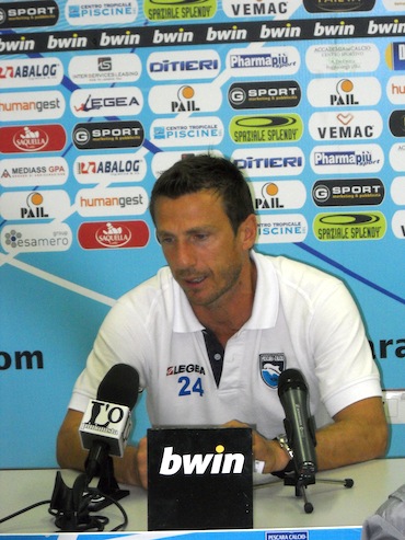 Tatticamente con Pellicori nella ripresa non abbiamo cambiato modo di gioco, sia partiti con 2 punte le centrali che si alternavano e gli esterni che giocavano alti in una sorta di 4-2-4 offensivo. Nel primo tempo pur non avendo creato molte palle gol come in altre occasioni ne abbiamo avute due una con Iunco con Pinna che è stato bravo e un’altra dove si poteva calciar meglio sotto porta. Abbiamo comunque creato delle azioni pericolose. In settimana lavoriamo tanto anche sulle palle inattive e abbiamo dei piedi buoni ma purtroppo oggi non ci sono stati gli effetti sperati… Rispetto alle ultime gare abbiamo comunque fatto un passo indietro e non solo dal punto di vista del risultato. Loro avevamo più entusiasmo di noi, si sono trovati la partita praticamente sulla strada che volevano mettere ed è rimasto più facile per loro e meno per noi … Avevo visto il Pescara con il Siena dove meritava di vincere, non l’ha fatto e ha rischiato di perdere. Con l’Atalanta aveva preso due gol su calci piazzati ma aveva colpito un palo e creato diverse palle gol. E’ una squadra di categoria che non merita la posizione attuale di classifica. Ha giocatori di qualità in avanti.