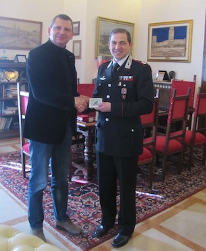Il saluto del sindaco Albore Mascia al Comandante della Compagnia di Pescara che a Foggia assumerà l’incarico di Comandante del Reparto Operativo del Comando Provinciale dei Carabinieri