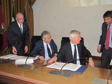 PESCARA – Il sindaco di Pescara Luigi Albore Mascia ,ieri mattina, con il vicesindaco Berardino Fiorilli, ha preso parte all’incontro svoltosi presso l’Auditorium De Cecco, in piazza Unione, per la stipula dell’Accordo di programma per l’Abruzzo 2015, promosso dal Presidente Chiodi e dall’assessore regionale alle Attività Produttive Alfredo Castiglione.