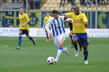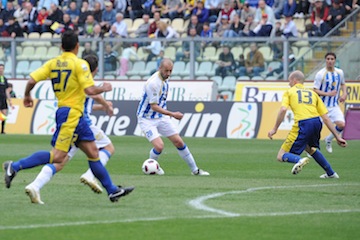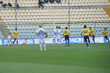 Al 23′ c’è il vantaggio dei canarini: Zanon commette una leggerezza di testa servendo Signori che passa a Mazzarani in mezzo all’area. Il numero 10 gialloblù difende il pallone e scarica su Greco che la matte dentro. La partita in pratica finisce qui. Il Pescara è totalmente incapace di reagire. La squadra di Di Francesco non conclude mai in porta e può recriminare solo per un presunto contatto in area tra Diagouraga e Sansovini (6′ della ripresa), che l’arbitro non giudica da rigore.