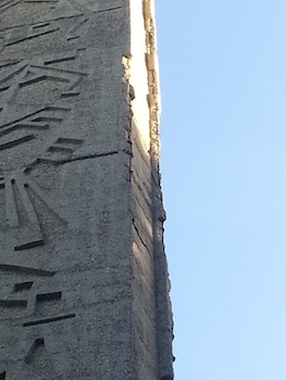 Il Teatro vive in un totale abbandono e la Stele cade letteralmente a pezzi.