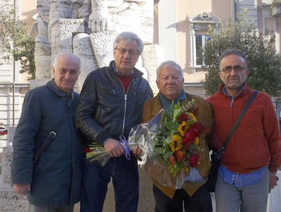 Ieri Geremia Mancini Presidente onorario dell’Associazione “Ambasciatori della fame” ed ex Segretario Generale della Ugl, ha voluto onorarlo deponendo fiori a Pescara in Piazza Garibaldi dinanzi al Monumento dedicato “ai caduti italiani di tutte le guerre”.