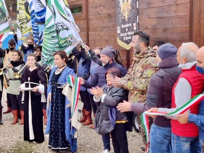 Casa bagnata…casa fortunata! Il museo è itinerante e lo porterò ovunque venga richiesto o dove ci sono eventi collegati alla grande guerra. Già alcuni Comuni e scuole mi hanno contattare per iniziative. E questa per me è una grande soddisfazione. Ringrazio il Gruppo storico Battaglione Alpini L’Aquila e ASD Bandierai dei Quattro Quarti per la loro presenza oggi qui e per la loro esibizione con i costumi e le divise storiche, ringrazio anche gli amici del Veneto con cui da tempo compio le mie ricerche storiche e tutti coloro che oggi sono qui e che nei prossimi giorni verranno a visitare “La casa del soldato”. Vi aspetto.” Così Simone Coccia Colaiuta ha presentato la sua iniziativa del museo mobile itinerante sulla grande guerra, prima di tagliare il nastro tricolore.