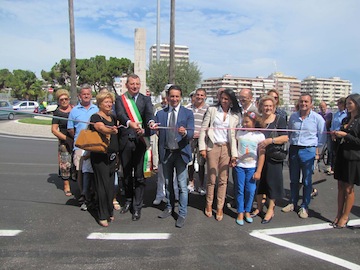 il progetto redatto dai nostri uffici ha previsto innanzitutto la revisione della vecchia rotatoria di piazza della Marina che ha assunto una forma allungata verso il mare, una sorta di ‘fagiolo’ che garantisce la possibilità di rotazione del traffico in assoluta sicurezza, ma, cosa più importante, ci ha permesso subito di ripristinare il collegamento viario diretto tra il lungomare Cristoforo Colombo-via Andrea Doria e via Marco Polo, lasciando dunque all’automobilista la scelta se salire sulla rampa dell’asse attrezzato o se proseguire il proprio percorso nella viabilità interna urbana. Oggi dunque inauguriamo la nuova rotatoria, che abbiamo impreziosito costruendo una fontana come elemento di arredo urbano: per la sua realizzazione abbiamo deciso l’uso di materiali come cubetti di porfido, travertino, betonella e la fontana è dotata di nove zampilli, che andranno a valorizzare il monumento ai Caduti, arricchito da alberi, tra cui un ulivo, simbolo della vita, quindi una nuova illuminazione e l’impianto di irrigazione per la cura del verde. In altre parole questa rotatoria è diventata uno straordinario biglietto da visita per chi arrivando dall’asse attrezzato, anche da Roma, scenderà in una piazza completamente rivista e riqualificata. E a effettuare i lavori è stata l’impresa De Leonibus di Elice che si è aggiudicata l’intervento per 163mila euro. Ovviamente non è finita qui: la nuova rotatoria ci ha permesso di ripensare tutta la viabilità della zona. Cominciamo stamane aprendo ufficialmente al doppio senso di marcia la strada che collega piazza della Marina con via da Vestea, normale prosecuzione di via Don Brandano, per arrivare direttamente in via Vespucci. E questo primo provvedimento ci ha imposto una fase di rodaggio per consentire alla città di abituarsi alla novità. Tra qualche settimana, probabilmente dopo l’apertura delle scuole, per superare la fase clou del rientro in classe che tradizionalmente determina un incremento del traffico urbano, procederemo con i due cambi sostanziali, ossia l’inversione del senso di marcia in via Vespucci, dove ripristineremo la direzione monti-mare, e in via da Vestea, dove tornerà il senso mare-monti, eliminando anche il brutto incrocio oggi esistente con via Bardet, costantemente fonte di pericolo. E ovviamente poi dovremo apportare altre piccole modifiche alle microvie di collegamento tutt’attorno.