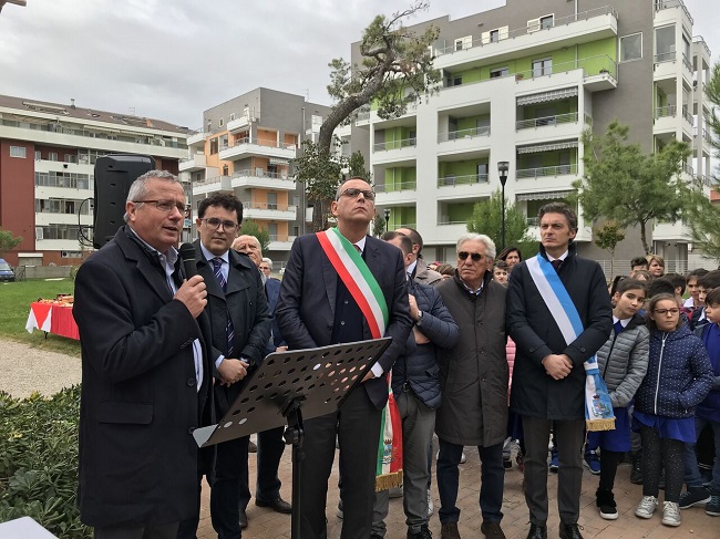 “E’ con immenso piacere che noi amministratori – così Franco Di Michele e Antonio Giorgio Lattanzio della Archea Costruzioni – partecipiamo a questa riconsegna del parco Angelo Vassallo. E’ stato un lavoro lungo e complesso, chi è del quartiere ricorderà certamente le condizioni in cui quella intera area versava, ma grazie alla collaborazione di tutti coloro che hanno dato fiducia alla Archea Costruzioni, a quelli che hanno lavorato per la realizzazione dello stesso, al Comune di Pescara che ha programmato la giusta destinazione territoriale e al buon progetto a firma dell’Ingegner Marco Pasqualini, è stato possibile realizzare uno spazio verde di tale estensione e di strategica importanza nel cuore di Pescara Porta Nuova. L’auspicio della Archea Costruzioni è che l’area possa essere goduta appieno dal quartiere, dalla comunità pescarese e rappresenti un esempio di come si può costruire salvaguardando comunque gli interessi della collettività.”