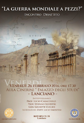 Ne parleranno a Lanciano al Palazzo degli Studi venerdì 26 febbraio, in un incontro-dibattito organizzato dal Rotary Club, i massimi esperti italiani di geopolitica, affari internazionali e strategie: