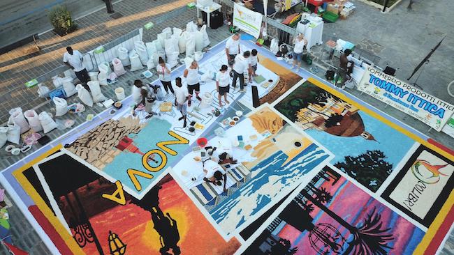 Sabato 8 e domenica 9 agosto, in Piazza Fosse Ardeatine, una squadra multiculturale di 20 esperti infioratori, lavoreranno alla realizzazione di un quadro artistico di 100 mq. Il disegno dell’opera, redatto dalla maestra infioratrice del “Colibrì Infiorate” Barbara Monaco, quest’anno è interamente dedicato alla Madonna del Portosalvo, e prevede al suo interno l’utilizzo di simboliche installazioni marinare.