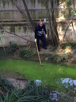 Decine parimenti i campionamenti eseguiti sulle acque stesse del fiume e sugli scarichi/fossi ad esso convogliati, nonché sui terreni limitrofi per accertare il possibile rilascio di sostanze contaminanti. Partendo dall’elenco delle autorizzazioni allo scarico rilasciate dai competenti uffici delle Province di Pescara e Chieti, non senza le ovvie difficoltà, in parte dovute all’impervietà dei luoghi, si sta insomma procedendo a passare, palmo a palmo, l’intero alveo fluviale per verificare quali siano i motivi dell’esistente forte degrado ambientale. Gli accertamenti continueranno nei prossimi mesi attraverso la verifica in situ di quanto in parte già assodato a mezzo delle informazioni in vario modo acquisite. É infatti stato elaborato un complesso stralcio planimetrico sul quale sono state riportate tutte le anomalie di cui si è già a conoscenza, in parte documentate anche attraverso l’impiego dei mezzi aerei del Corpo di stanza a Pescara stesso (aereo ATR 42 ed elicottero Aw139), entrambi dotati di sofisticatissime attrezzature di scoperta e ricerca delle fonti di inquinamento.