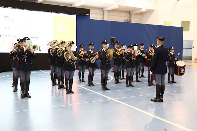 All’esterno del Palazzetto è stato allestito il ‘Villaggio della Legalità’, ossia gli stand destinati alle attività laboratoriali dei bambini della scuola primaria, coordinate dalla Polizia di Stato, presente con i reparti Stradale, Postale, Ferroviaria, Scuola, Gruppo Cinofilo e Fanfara, poi i Carabinieri e la Guardia Forestale, oltre ai volontari delle Associazioni Scout e degli artisti della Clown Terapia. All’interno del Palazzetto la giornata della legalità, affidata alla conduzione della Iena Pietro Sparacino, al cui microfono si sono alternati studenti, arbitri di calcio internazionali e artisti.