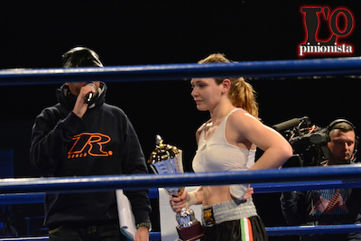 ELITE DONNE (KG. 62) – Successo per la giovane bergamasca Anna Lia Moretti, campionesso Low Kick nel 2013, che ha superato la campionessa europea, Mimma Mandolini, favorita e idolo di casa. Una gara dove ha vinto la maggior freschezza atletica e una guardia mancina che ha dato non pochi problemi alla Mandolini, uscita tra gli applausi del suo pubblico che ha apprezzato la determinazione e la volontà di vincerla fino all’ultimo colpo. Onore e merito alla Moretti che ha confermato la serata di grazie e grande qualità superando in finale la calabrese Giulia Chiodo, che a sua volta aveva superato in semi Danila Bellezze. In entrambi i match l’atleta ha confermato di essere molto esperta nel colpire con i calci.