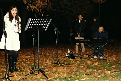 L’AQUILA – Quest’anno non poteva iniziare meglio il Natale, qui a L’Aquila. Al cospetto di una nutrita folla, le voci di Anna Avato, Sandro Argentieri e Fausto D’Antonio hanno dato vita a un concerto che si è tenuto al parco del Castello. Immersi in una scenografia naturale, sopra a un tappeto di foglie e sotto i rami di altissime piante, i tre ragazzi aquilani hanno dato il via alle festività di dicembre. Accanto alle luci dell’albero di Natale appena accese, i tre vocalist, interpretando con passione e professionalità melodie tipicamente natalizie, hanno creato una suggestiva atmosfera che ha coinvolto i presenti.