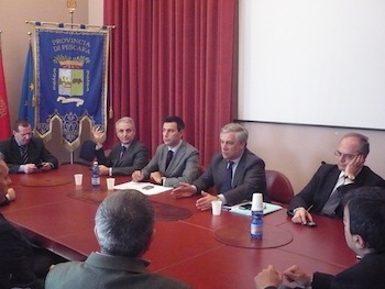 PESCARA – Ieri mattina il vice presidente della Commissione europea Antonio Tajani ha incontrato a Pescara una delegazione di armatori e pescatori ed ha assicurato il suo interessamento per arrivare all’erogazione, in favore della marineria di Pescara, dei tre milioni di euro previsti nel Decreto sviluppo. L’appuntamento, promosso dal presidente della Provincia di Pescara Guerino Testa, si è svolto a Palazzo dei Marmi e ha visto la partecipazione anche del senatore Gaetano Quagliariello, dell’assessore regionale Mauro Febbo e del comandante della Direzione marittima Luciano Pozzolano.