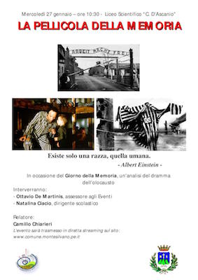 Si terranno, al Liceo Scientifico C. D’Ascanio di Montesilvano, mercoledì 27 gennaio, le celebrazioni organizzate dal Comune di Montesilvano in occasione del Giorno della Memoria