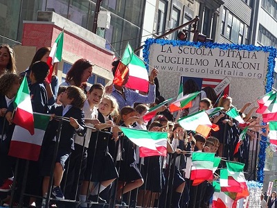 E’ lunedì 12 ottobre. Il Columbus day di New York, quest’anno il 71° e nel giorno stesso della scoperta dell’America, si apre con la celebrazione della Messa alla cattedrale di St. Patrick. Il tempio appare in tutto il suo splendore, ritrovato dopo un accuratissimo restauro, e le svettanti forme gotiche della facciata sono una meraviglia di luminosità. Mancando il card. Timothy Dolan, arcivescovo di New York, impegnato a Roma per il Sinodo, è il vescovo di Rockville Centre, William Murphy, a presiedere la celebrazione eucaristica. Sempre commovente l’esecuzione cantata per coro e organo dei due inni, italiano ed americano, che conclude la celebrazione. Dopo la Messa, sulla Quinta Avenue è già tutto un fervore di preparazione alla Parata, la più suggestiva e famosa nel mondo, seguita da oltre un milione di spettatori lungo il percorso e in tv. E’ davvero un’emozione viverla dal di dentro, percepire quel senso diffuso di orgoglio per l’identità italiana e di testimonianza sul contributo reso dagli emigrati italiani allo sviluppo degli Stati Uniti d’America. Un contributo apprezzato e riconosciuto, come il Presidente degli Stati Uniti scrive nella Proclamation del Columbus day. Anche quest’anno sono in rappresentanza ufficiale dell’ANFE, in quanto Gaetano Calà, direttore generale della prestigiosa associazione è stato trattenuto da pressanti impegni in Italia. Scelgo di sfilare con la splendida équipe di i-Italy, il network giornalistico diretto da Letizia Airos con il quale da anni collaboro. Letizia, presente con alcuni operatori tv e fotoreporter di redazione, mi integra volentieri nel gruppo scortato dalla 500 tricolore disegnata da Massimo Vignelli, driver Rosanna Di Michele. Il gruppo accompagna la delegazione di dirigenti e funzionari del Consolato di New York, con in testa il Console Generale dr. Natalia Quintavalle.
