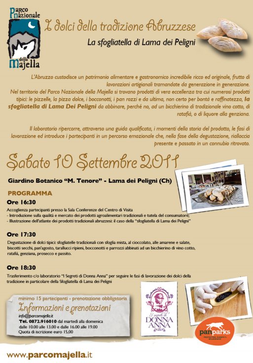 LAMA DEI PELIGNI (CH) – Si terrà il 10 settembre prossimo, dalle ore 16.30, presso il Giardino Botanico “M. Tenore” , a Lama dei Peligni, un Corso di degustazione sulla sfogliatella lamese.