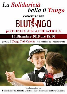 MONTESILVANO (PE) – Domenica 13 Dicembre, alle ore 18.00, presso la scuola Tango Club Calesita a Montesilvano, si terrà un evento benefico organizzato dall’associazione Amartè onlus, a favore del’AGBE che devolverà il ricavato al reparto di Onco – ematologia pediatrica dell’ospedale di Pescara. I Blutango terranno un concerto sulle note dei balli di tango più famosi con l’esibizione di ballerini professionisti e voce narrante.