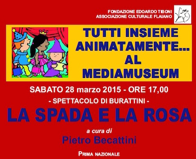 PESCARA – Sabato 28 marzo alle ore 17 presso il Mediamuseum di Pescara ci sarà in anteprima nazionale il nuovissimo spettacolo di burattini di Pietro Becattini dal titolo “La spada e la rosa”. Lo spettacolo è in tecnica mista con attori, sagome e burattini e forte interazione con il pubblico. Al termine dello stesso merenda per tutti i bambini presenti.