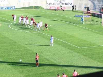 IL MATCH – Al 2’ Minotti dal limite da posizione decentrata sulla sinistra mandaa lato. Poco dopo i rossoneri reclamano un rigore per un presento atterramento in area di Mori su Falcinelli. Al 15’ Vantaggiato con una conclusione a giro dal limite manda di un nulla a lato. Al 17’ Minotti appoggia per Falcinelli che dalla lunga distanza manda di un soffio sopra la traversa. Al 19’ De Col crossa in area per Thiam che di prima manda alto. Al 21’ buona manovra dei padroni di casa, Casarini da poco fuori area manda di non molto sul fondo.