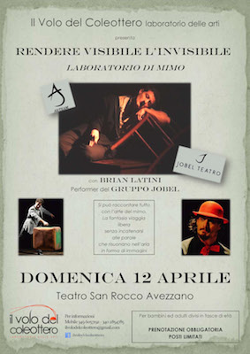 AVEZZANO (AQ) – Domenica 12 aprile presso il teatro San Rocco ad Avezzano ci sarà il Laboratorio di Mimo tenuto da Brian Latini del Gruppo Jobel Teatro ed organizzato da Il Volo del Coleottero. Lo stesso sarò diviso per fasce di età, dai bambini fino agli adulti. Sono disponibili gli ultimi posti, visto che sono limitati per permettere un adeguato svolgimento delle attività.