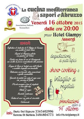 Venerdì 16 ottobre serata dedicata alla cucina mediterranea e ai sapori d’Abruzzo nell’Hotel Giampy di Assergi