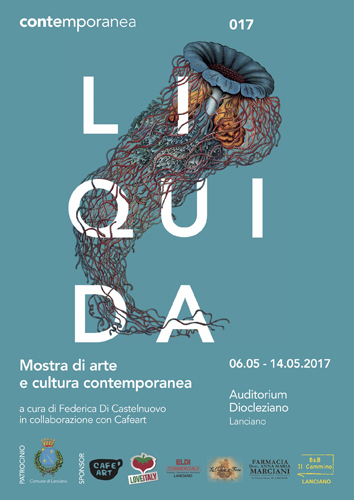 Contemporanea017 – LIQUIDA ha il patrocinio del Comune di Lanciano – Assessorato alla Cultura ed è organizzata in collaborazione con l’Associazione culturale Cafeart e con il supporto di sponsor del territorio frentano.