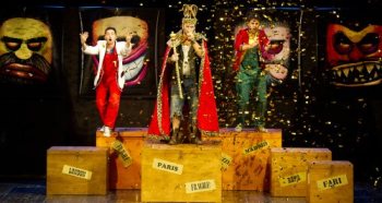 Da qui uno spettacolo almeno “doppio”, uno tutto “dentro” ed uno tutto “fuori”: uno fatto di falegnami, botteghe, viuzze, paese, compagni di scuola… insomma tutto cose …. e un altro fatto di parrucche gialle, ombre parlanti, fuochi, barbacce nere, campi miracolosi, casine di cristallo, bocche spropositate, pescicani… insomma tutto simboli e segni. Da qui spazi scenici che si incastrano, figure che si sdoppiano ingigantendosi o riducendosi, ombre e luci che sbucano dappertutto… Oggetti teatrali che crescono e spariscono…. Pulcini, grilli, gatti, corvi, civette, asini, pesci…Alla fine Pinocchio rompe la “gabbia” degli incubi, delle paure, delle illusioni, delle speranze… E ricomincia cosciente le sue “avventure”, è un burattino o un bambino?