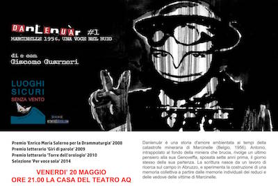 L’AQUILA – Venerdì 20 maggio alle 21.00 alla Casa del teatro, Piazza d’Arti – Via Ficara, a L’Aquila va in scena DANLENUÀR di e con Giacomo Guarneri